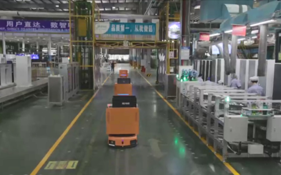 为车载冰箱物流配送打造的智能解决方案,,,,包含产中物流通过潜伏举升AMR搬运至线边,,,产后成品物流智能仓储,,,,流程包含产中物流智能齐套入库,,,线边安灯叫料AMR智能配送至线边,,成品入库、、、出库,,,,通过无人堆高车机器人,,智能仓储管理替代人工作业管理,,,,实现更高存储、、、、更高效率、、更具柔性化的解决方案。。